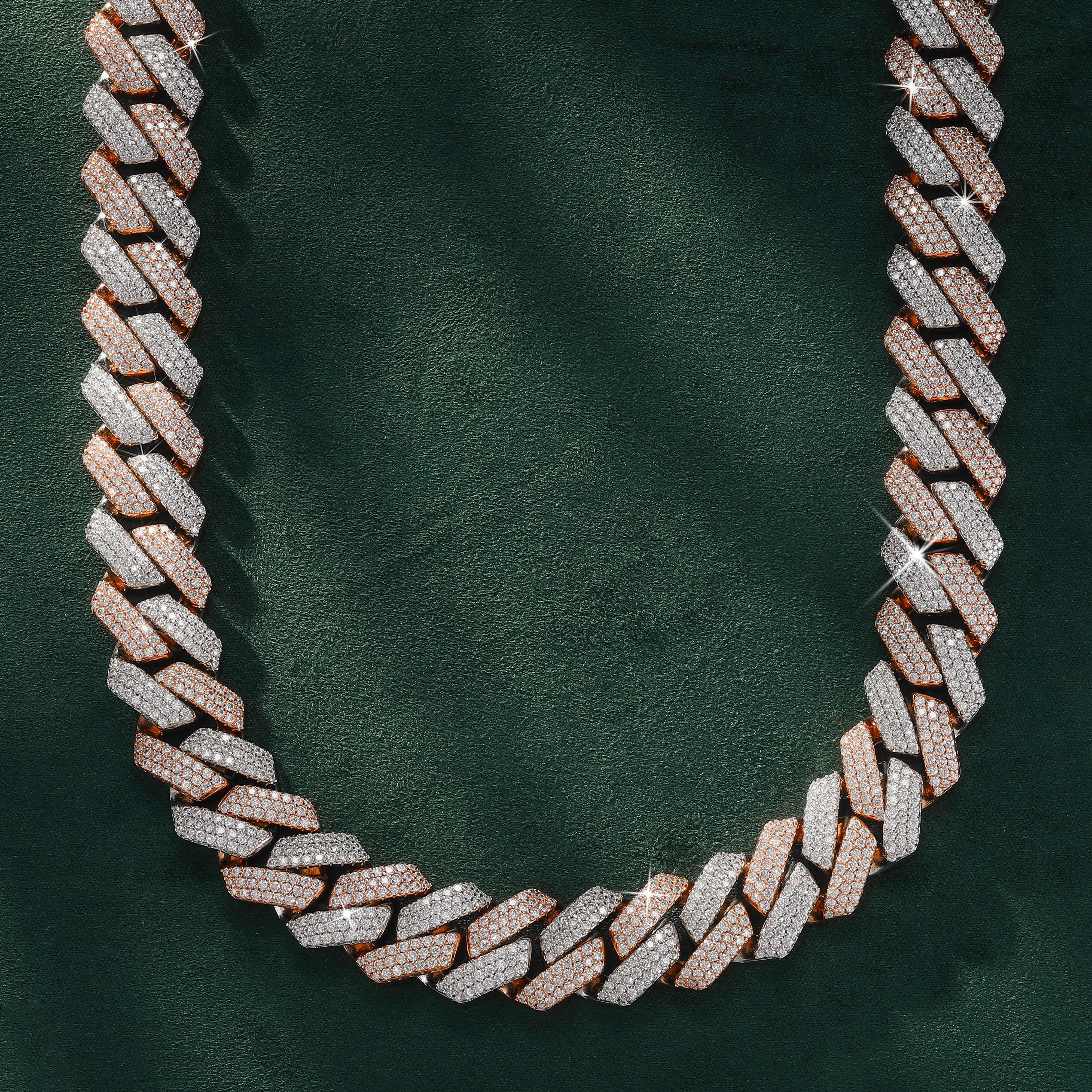 15mm Two-Tone Rose Gold & White Gold Three-Row Moissanite Cuban Chain