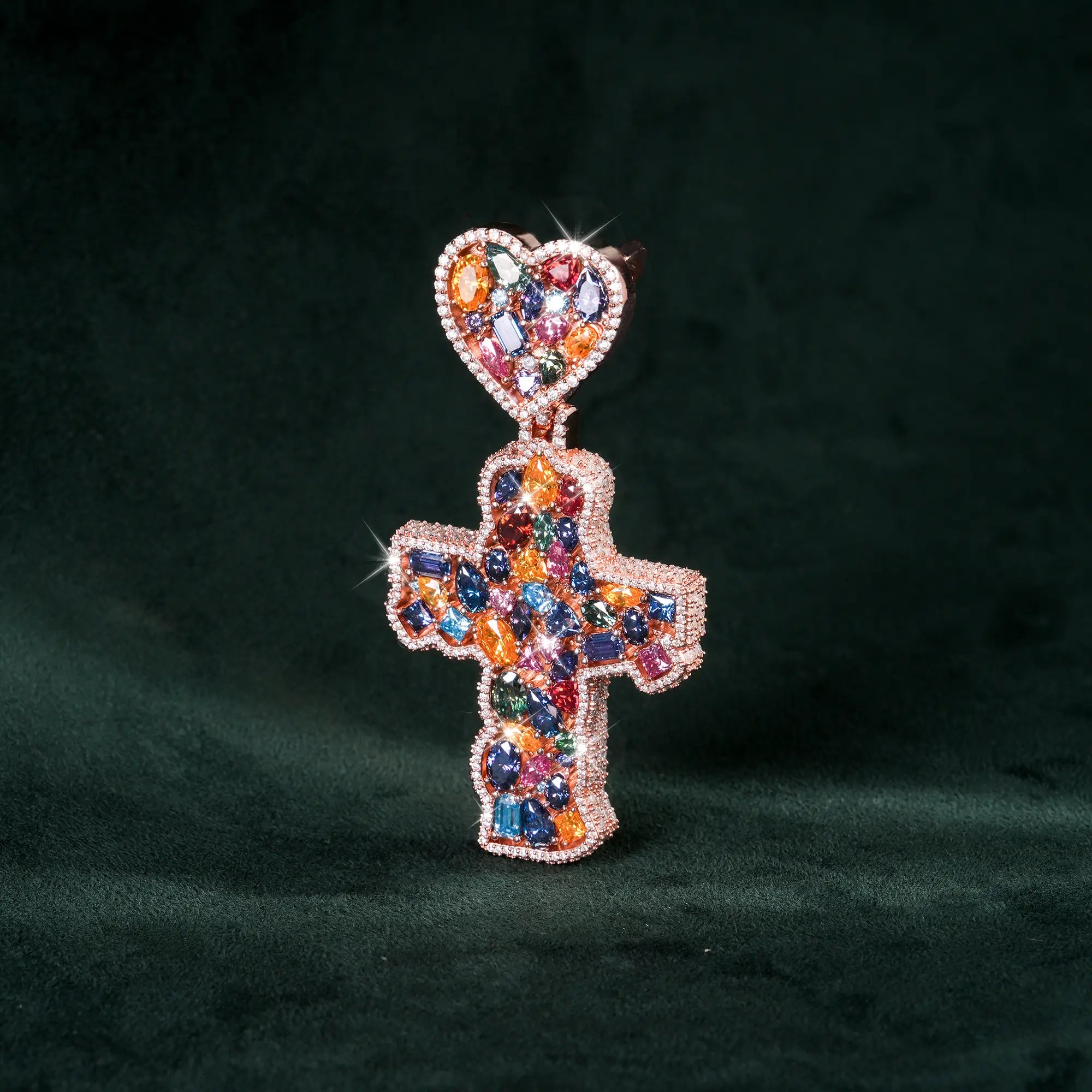 Moissanite Rainbow Halo Heart Cross Pendant