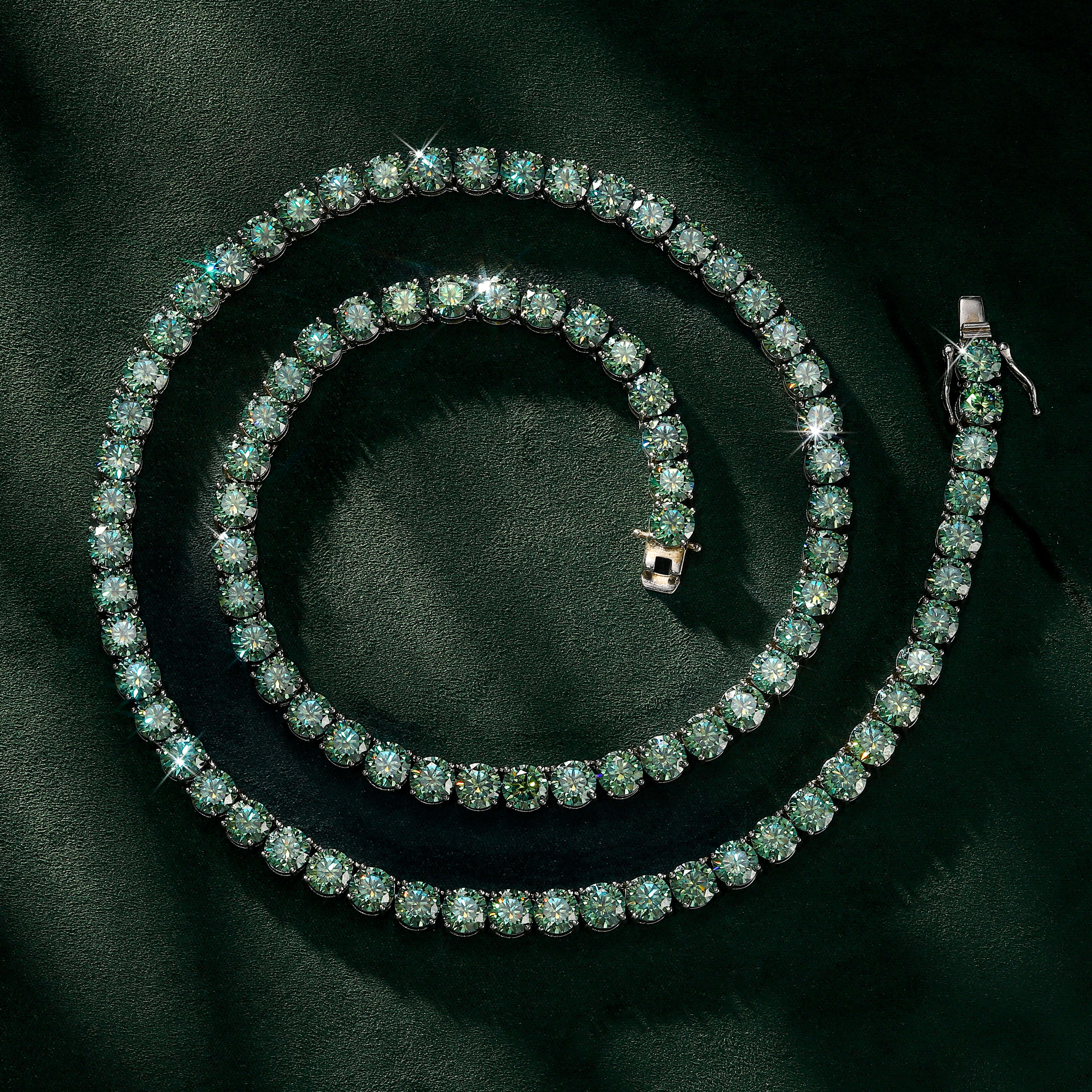 Sommarnox exclusive Green Moissanite Tennis Bracelet Necklace is now available, made of 925 sterling silver and PVD plated with a thick layer of 14K Gold .