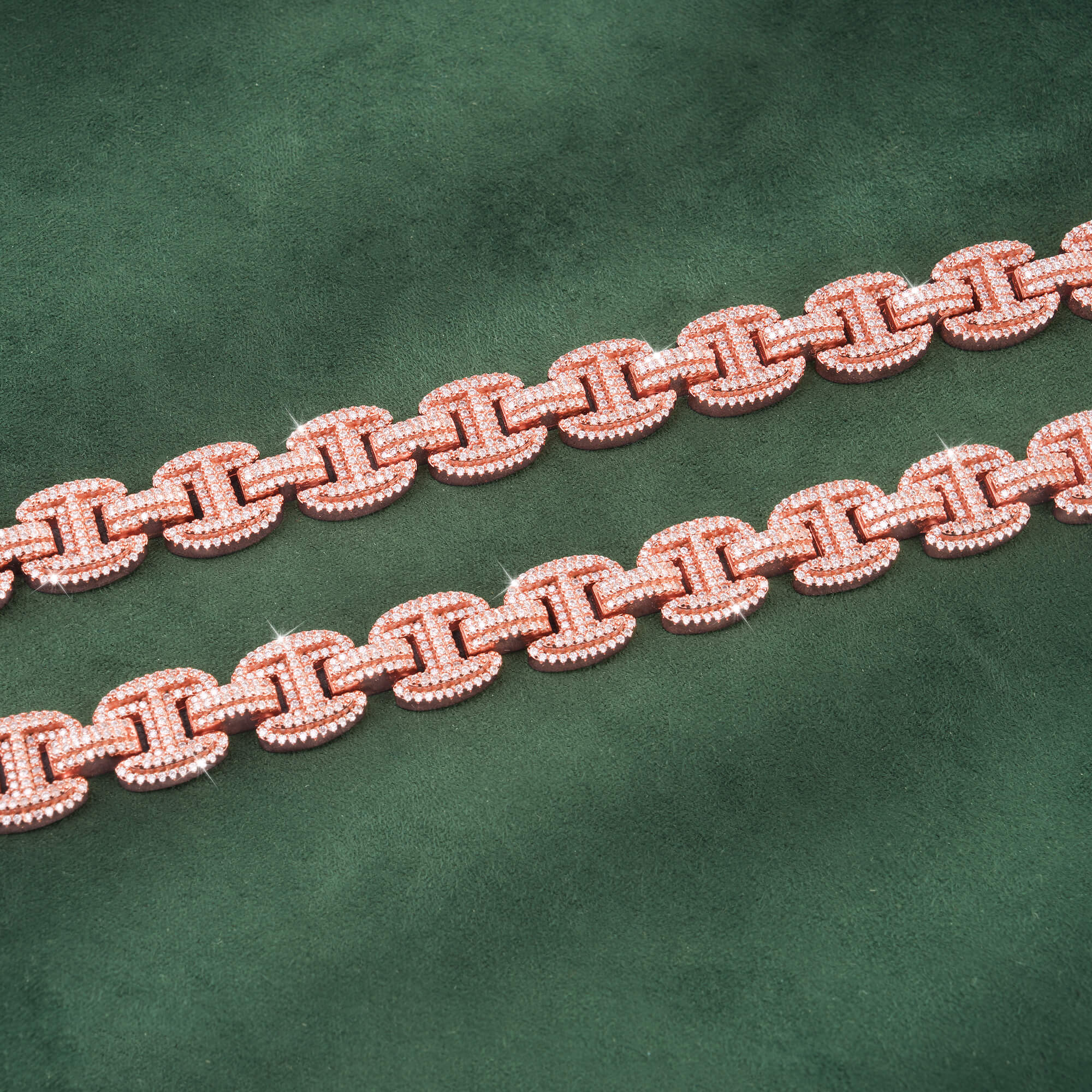 Sommarnox exclusive 12mm H-Link Moissanite Cuban Chain  is now available, made of 925 sterling silver and PVD plated with a thick layer of 14K Gold .