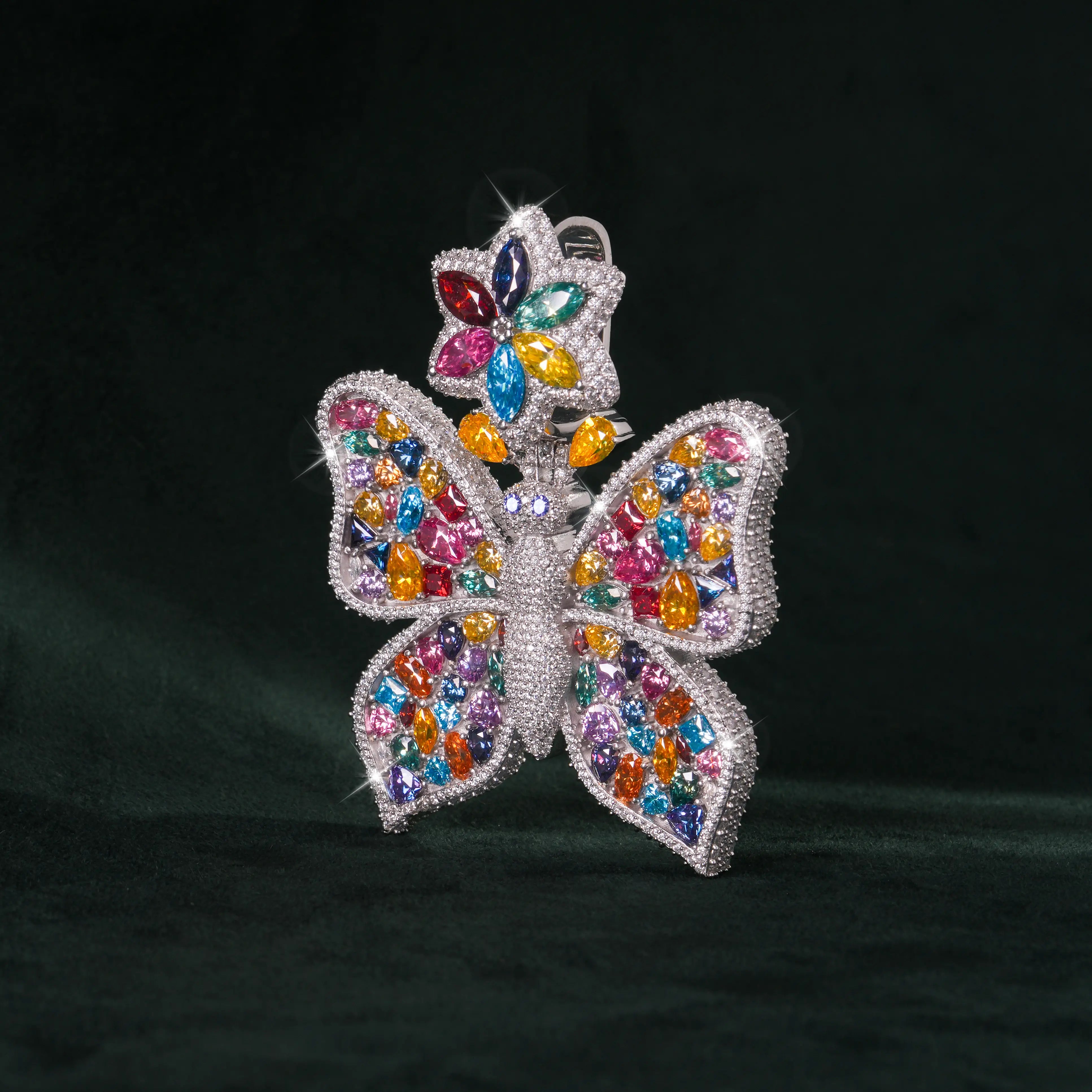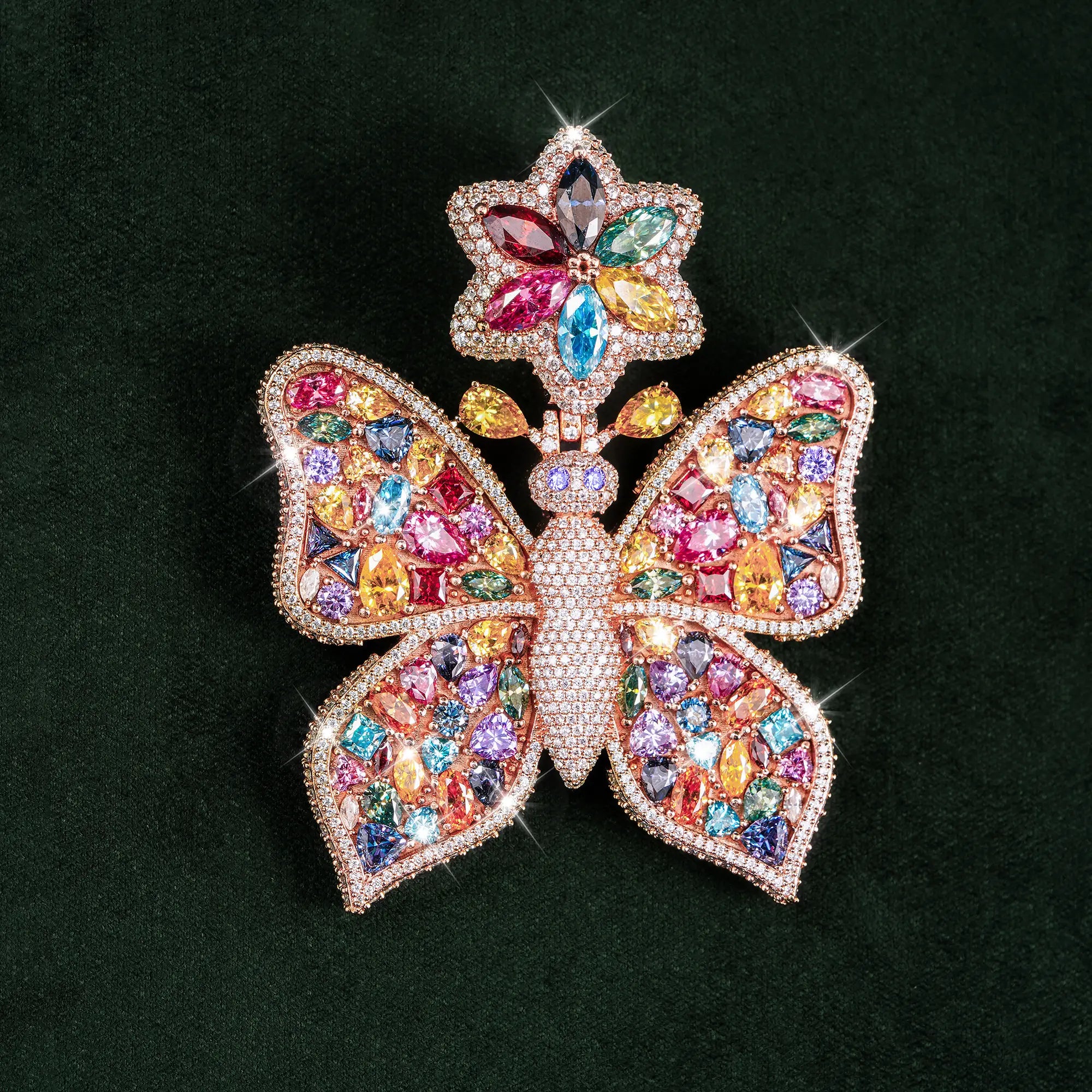 Rainbow Moissanite Butterfly Pendant