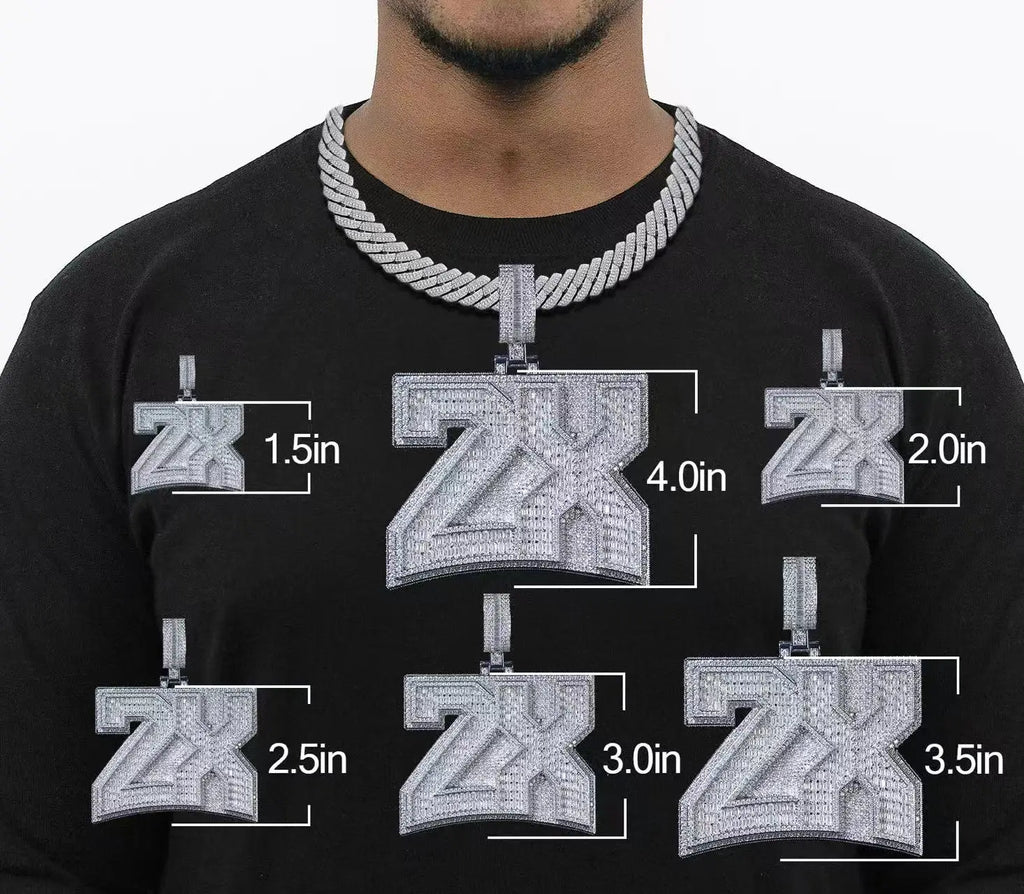 Compare how each pendant size looks on-body—from a subtle 1.5" to a bold 4.0". Use this guide to pick the right statement level and match it with your chain length and width. Still unsure? Message us for a quick size recommendation.