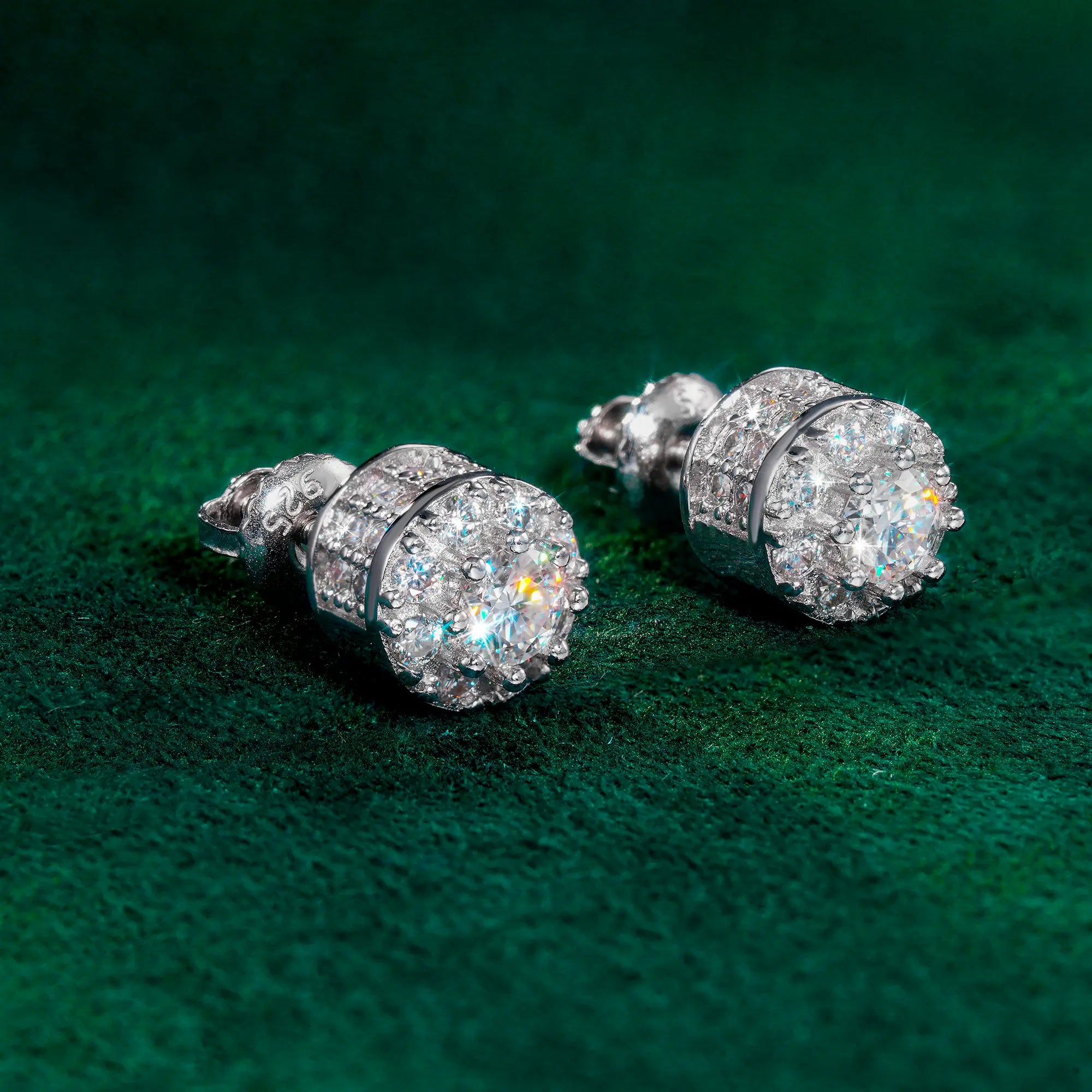 7.5mm VVS Grade 925 Sterling Silver Flower Cluster Earrings
