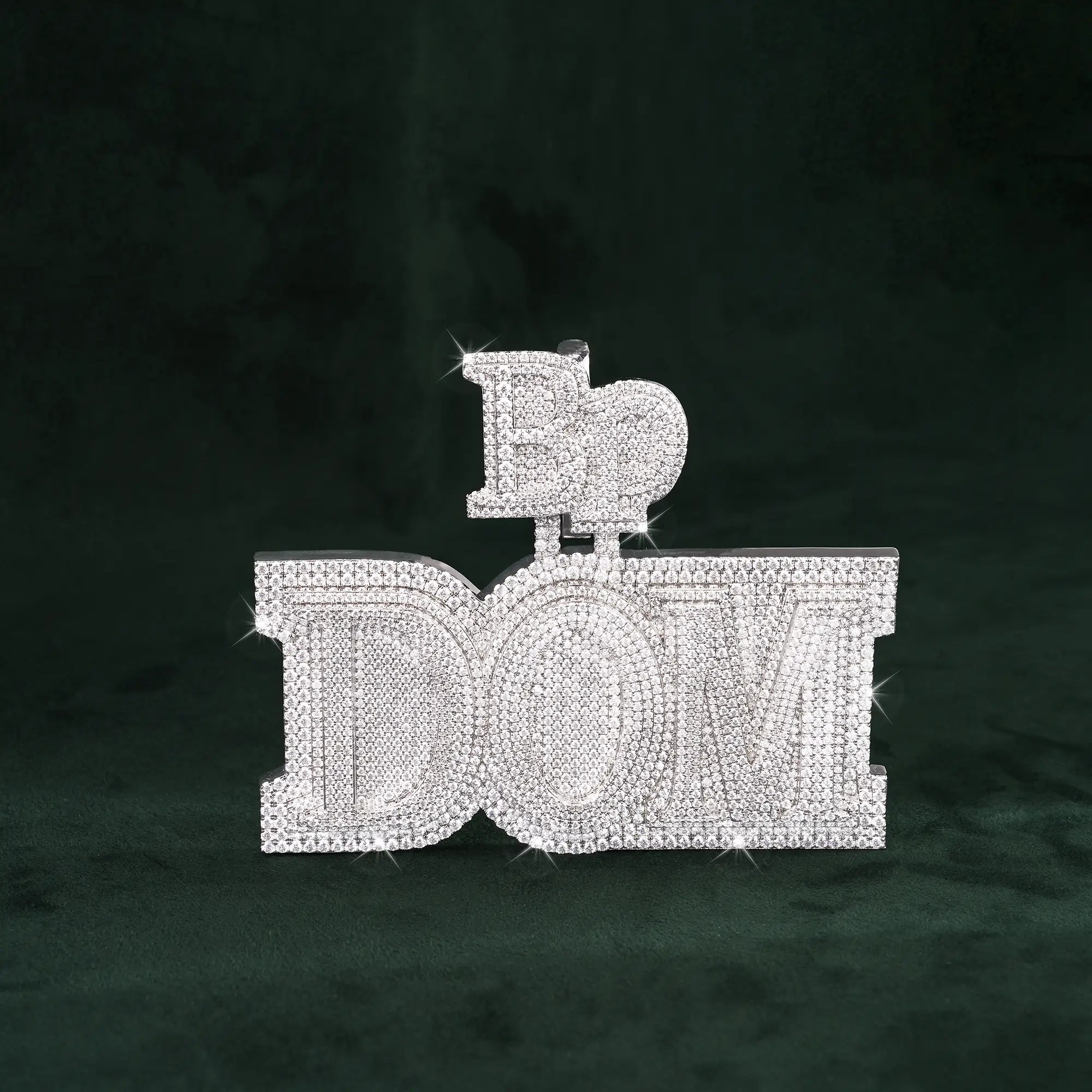 Sommarnox exclusive Custom “BP DOM” Iced-Out Name Pendant  is now available, made of 925 sterling silver and PVD plated with a thick layer of 14K Gold .