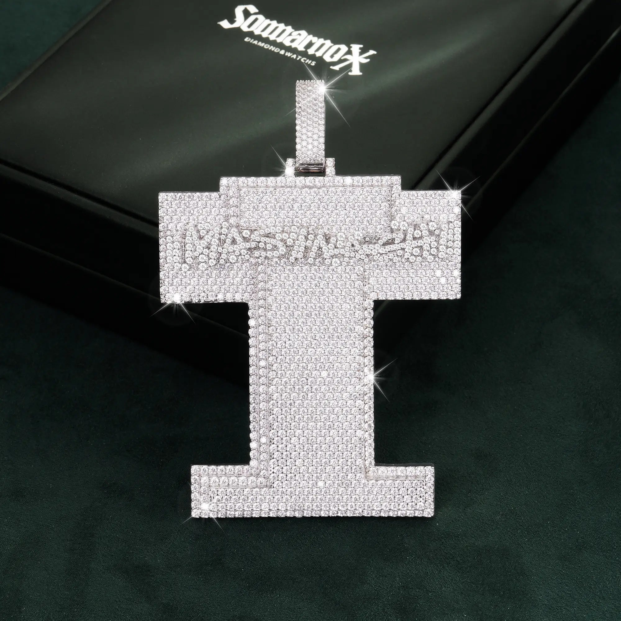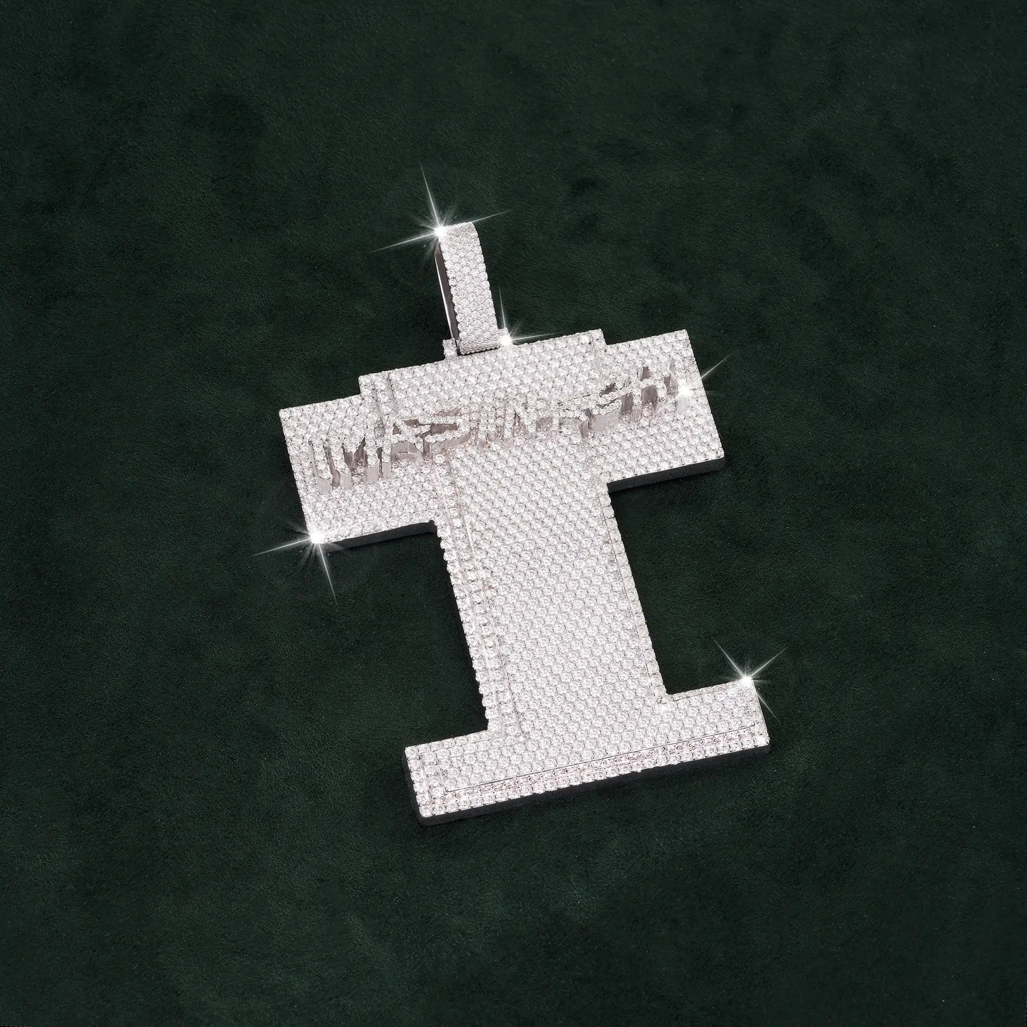 Sommarnox exclusive — Custom-made “I” Letter Pendant, fully iced for a bold statement. Crafted in 925 sterling silver and PVD plated with a thick layer of 14K gold for a rich, long-lasting gold finish.