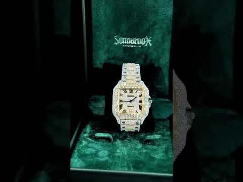 Make a bold statement with this two-tone Sommarnox Moissanite watch. Featuring a gold and silver pavé bracelet and a Roman numeral dial, this timepiece captures the perfect balance of elegance and street luxury.